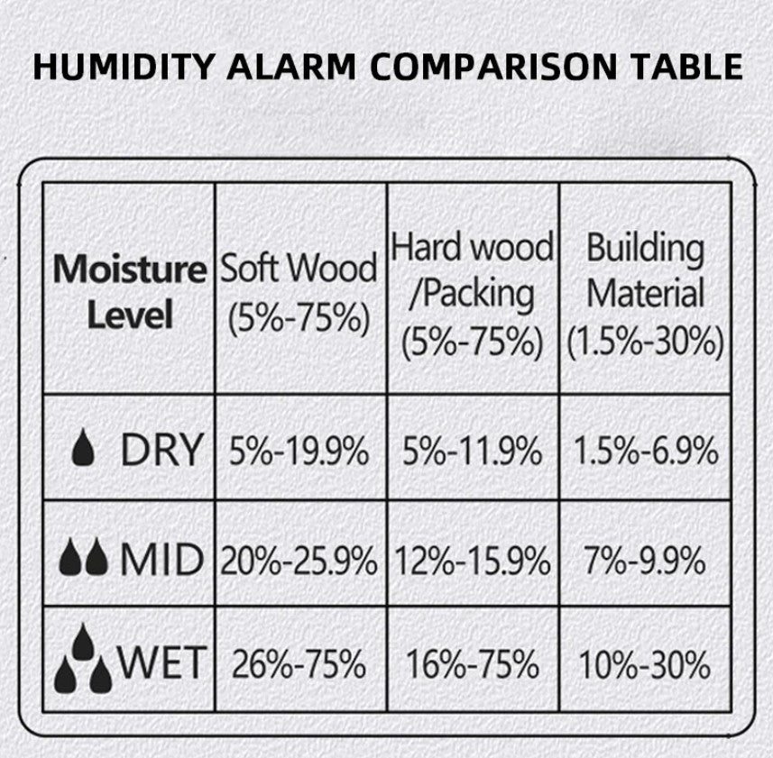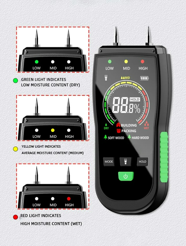 Detect excess moisture in lumber, flooring, or furniture early to prevent mold, warping, and structural issues. Ideal for woodworkers, carpenters, and DIY enthusiasts.