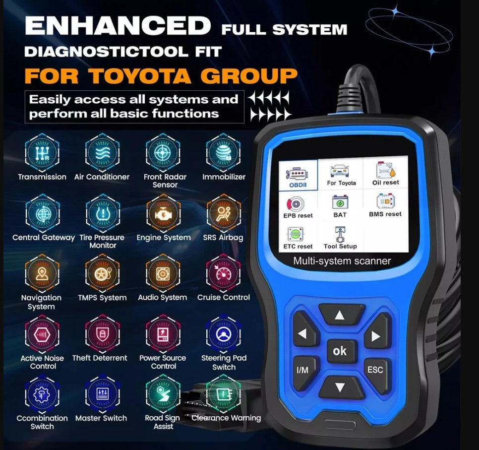 Toyota-focused access – Reads ABS, SRS, EPB, and other safety modules that generic OBD tools cannot.